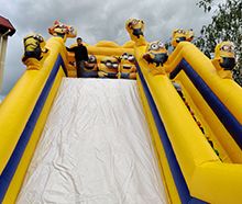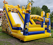 Zjeżdżalni Minionki to doskonała atrakcja zdolna uświetnić każdą imprezę. Od urodzin, chrzcin i komunii zaczynając, a na weselacha kończąc. Wymiary tego Dumchańca to 5m szerokości, 6m wysokości i 8m długości.